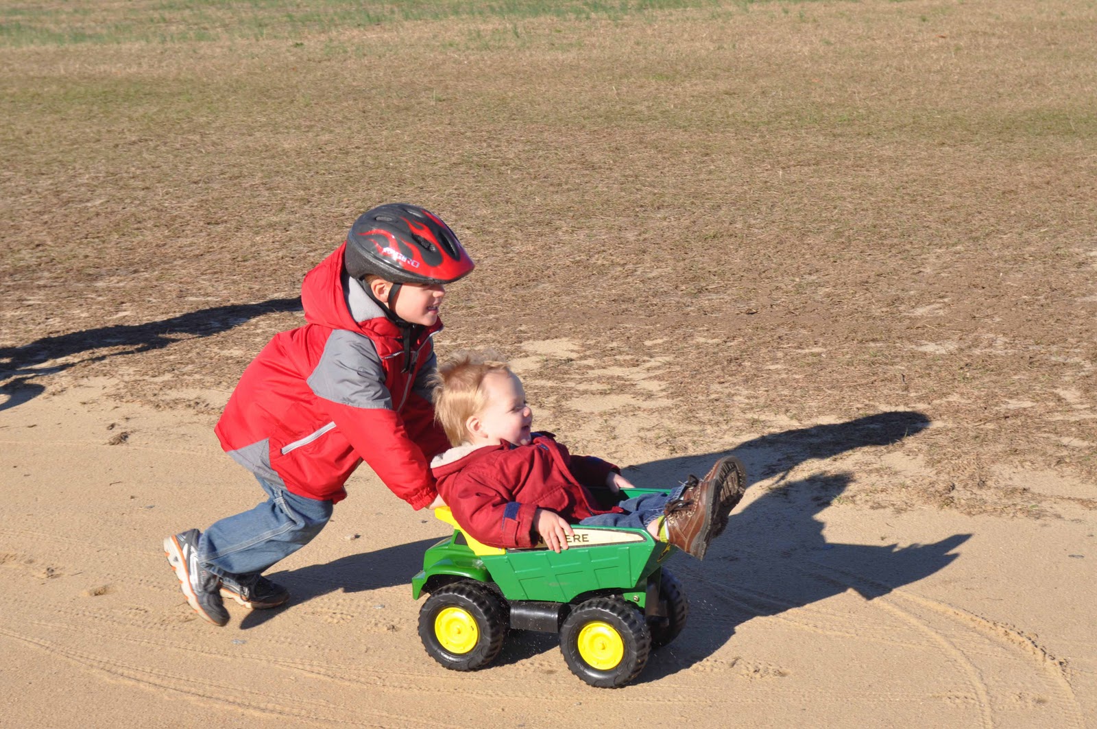 Jack giving Sean a push. Sean LOVES dump truck races!
